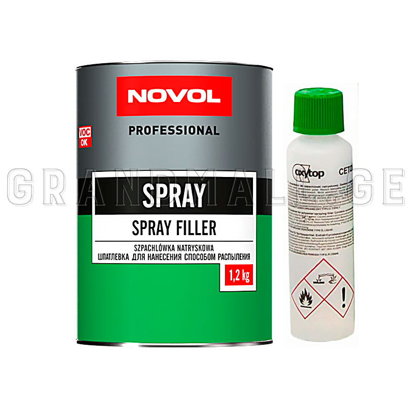 Novol Spray Filler 1.2 kg is a professional fine-grain liquid spray filler designed for car body repair and refinishing. It ensures smooth application, fast drying, and easy sanding, creating an even and durable surface ready for primer and paint. Ideal for filling minor imperfections and preparing vehicle panels and metal structures for high-quality automotive painting.