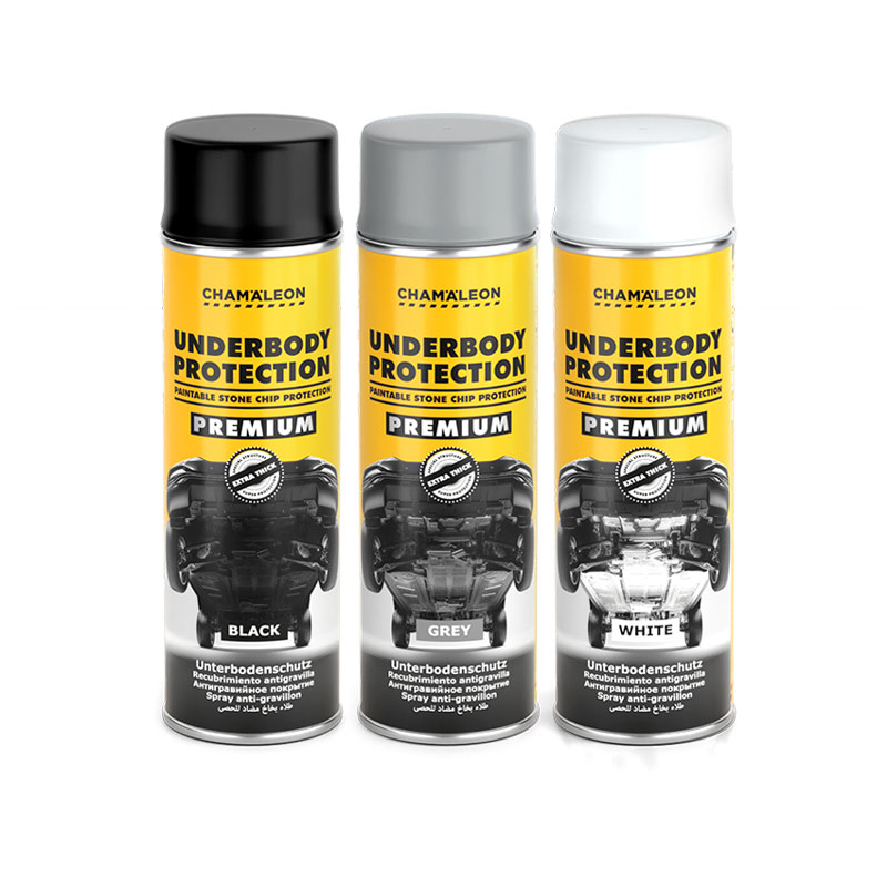 CHAMALEON Premium Underbody Protection არის პრემიუმ კლასის ანტიგრავიური საფარი აეროზოლში, რომელიც განკუთვნილია ძარის ძირის და ქვედა მონაკვეთების დასაცავად. ქმნის სქელ ელასტიურ ფენას, რომელიც ეხმარება მეტალს დაიცვას კენჭების, გზის ნამსხვრევების, ტენისა და მარილისგან.